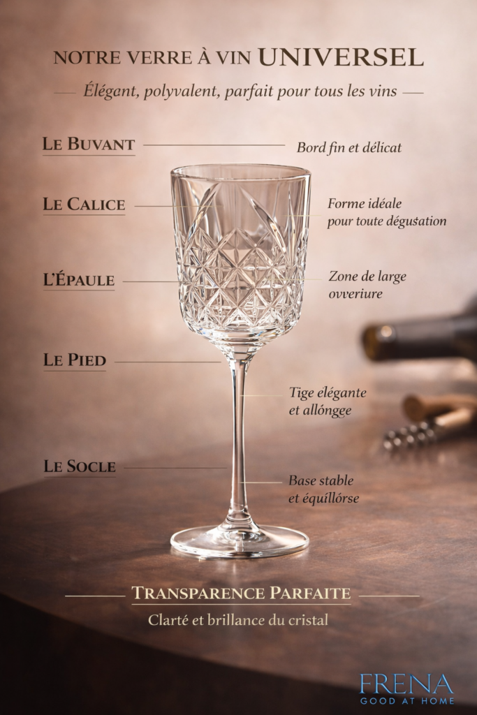 Le verre à vin est un objet où technique et esthétique se rencontrent avec précision. Chaque détail, du buvant au socle, influence l’expérience de dégustation tout en contribuant à l’élégance globale de la table.
